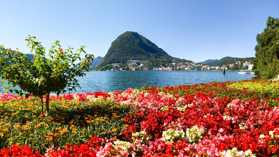 루가노 호숫가에 위치한 아름다운 호수 공원으로 공원 반대편에 위치한 몬테 산 살바토레와 아름다운 꽃들을 배경으로 사진 촬영을 할 수 있는 명소입니다.